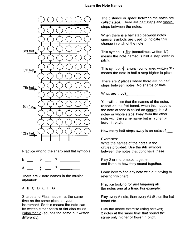 And so on sequentially until at the 12th fret where the notes repeat but are and octave higher.